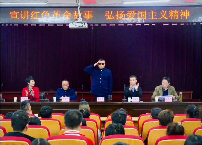为贯彻落实习近平总书记重要讲话精神,大力弘扬爱国主义精神和革命英雄主义精神,厚植爱国主义情怀,营造崇尚英雄、学习英雄、关爱英雄的浓厚氛围,激发当代青少年热爱祖国的自觉性和努力学习的主动性。11月4日,省荣康医院荣军休养员赴我校宣讲红色革命故事活动在我校以智楼一楼报告厅举行。老兵李明辉、薛朝荣,省荣康医院党委委员、副院长崔俊岗,学校副校长程玉梅,商贸与电子信息系师生代表近140人参加活动,活动由学生处副处长王斌主持。