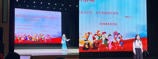 为深入学习贯彻习近平新时代中国特色社会主义思想、党的二十大精神和中央民族工作会议精神,激励广大学生形成铸牢中华民族共同体意识的思想自觉和行动自觉,5月25日,安庆市“厚植家国情怀 铸牢中华民族共同体意识”主题演讲比赛在安徽黄梅戏艺术职业学院举行。我校23级学前5班姚舒婉和21级全科4班张慧颖同学参加比赛。经过激烈角逐,最终姚舒婉获一等奖,张慧颖获三等奖。