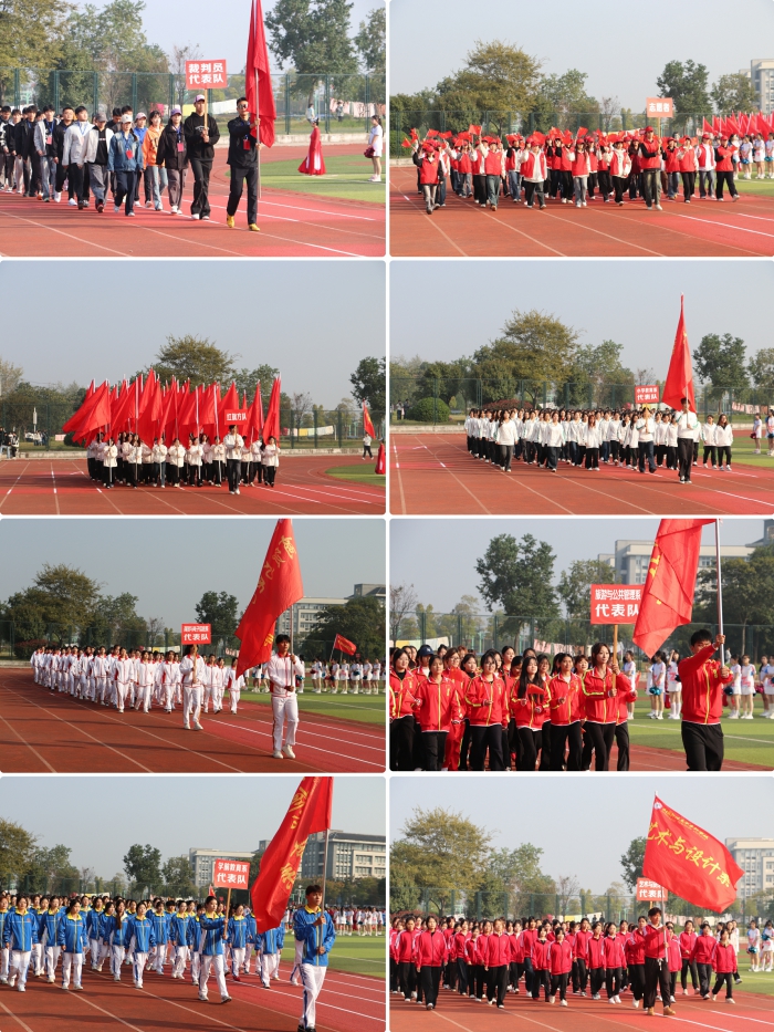 开幕式上,绚丽的舞蹈与健美操表演率先点燃了全场的热烈氛围,同学们以充满活力的舞姿,完美诠释了新时代大学生的青春风采。升旗仪式之后,国旗护卫队、校旗校徽方队、志愿者、裁判员以及各院系运动员代表等12个方阵依次入场。他们迈着坚定有力的步伐,精神饱满地经过主席台,充分展现出桐师师生激情飞扬、奋发向上的精神面貌。