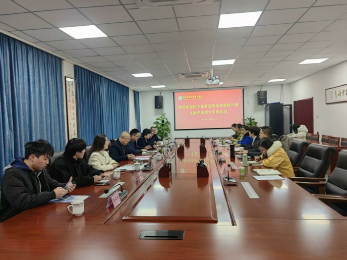 为深化校地合作、校企合作,搭建文旅产业人才供需对接桥梁,12月12日下午,怀宁县委常委、宣传部部长施跃平带队来我校开展文旅产业招才引智专项活动,浙江新长城文旅集团有限公司总裁程海波,安庆硅基思索科技有限公司相关负责人、怀宁县文化旅游体育局和人力资源和社会保障局有关领导随行。副校长程玉梅出席会议。