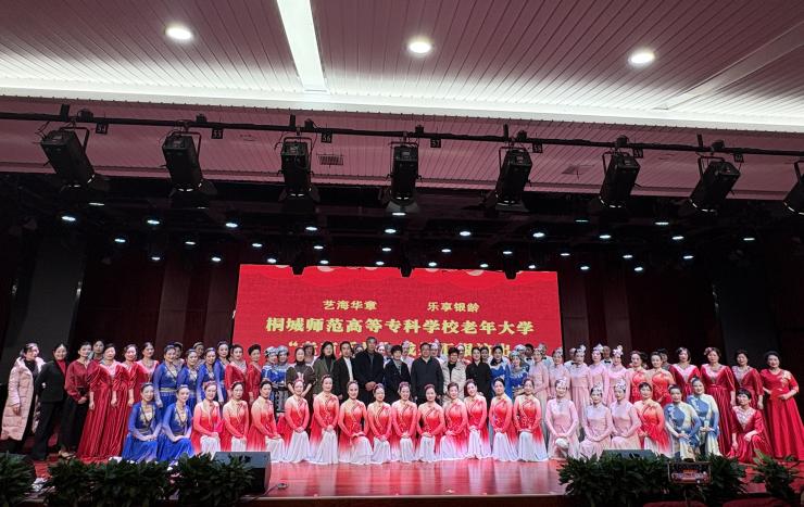 12月23日,桐城师范高等专科学校老年大学“艺海华章 乐享银龄”老有所学成果汇报演出在音乐厅隆重举行。校党委书记、校老年教育委员会主任王子龙,校党委副书记张敏丽,副校长程玉梅,党委委员、纪委书记汪志耿,党委委员、宣传部部长伍建强,党委委员、组织部部长王斌,老年大学校长梁志斌及老年教育工作委员会成员观摩了汇报演出。老年大学学员观看了演出。