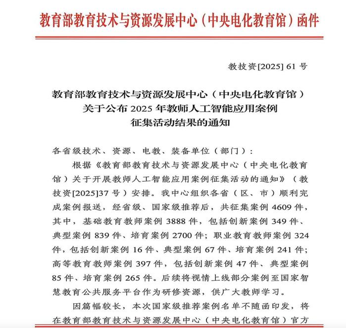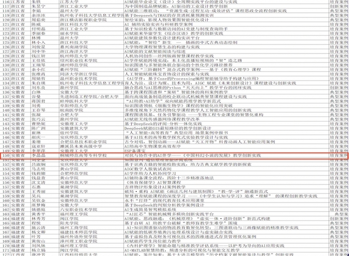 近日,从教育部教育技术与资源发展中心(中央电化教育馆)传来喜讯,根据【教技资[2025] 61号】文件公示,我校教师李晶晶报送的教学案例《对抗与协作中的 AI 伴学——<中国科幻小说的发展>》成功入选 2025 年教师人工智能应用案例征集活动培育案例。