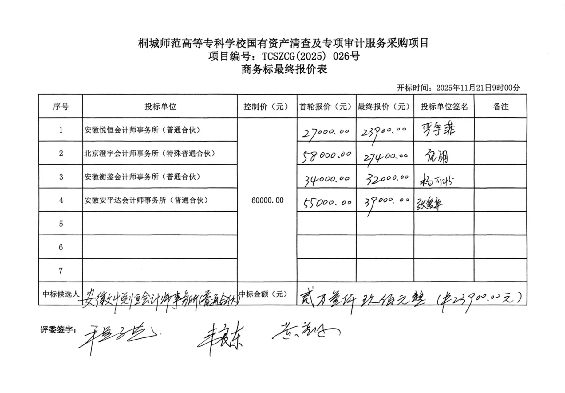 二、项目名称:桐城师范高等专科学校国有资产清查及专项审计服务采购项目