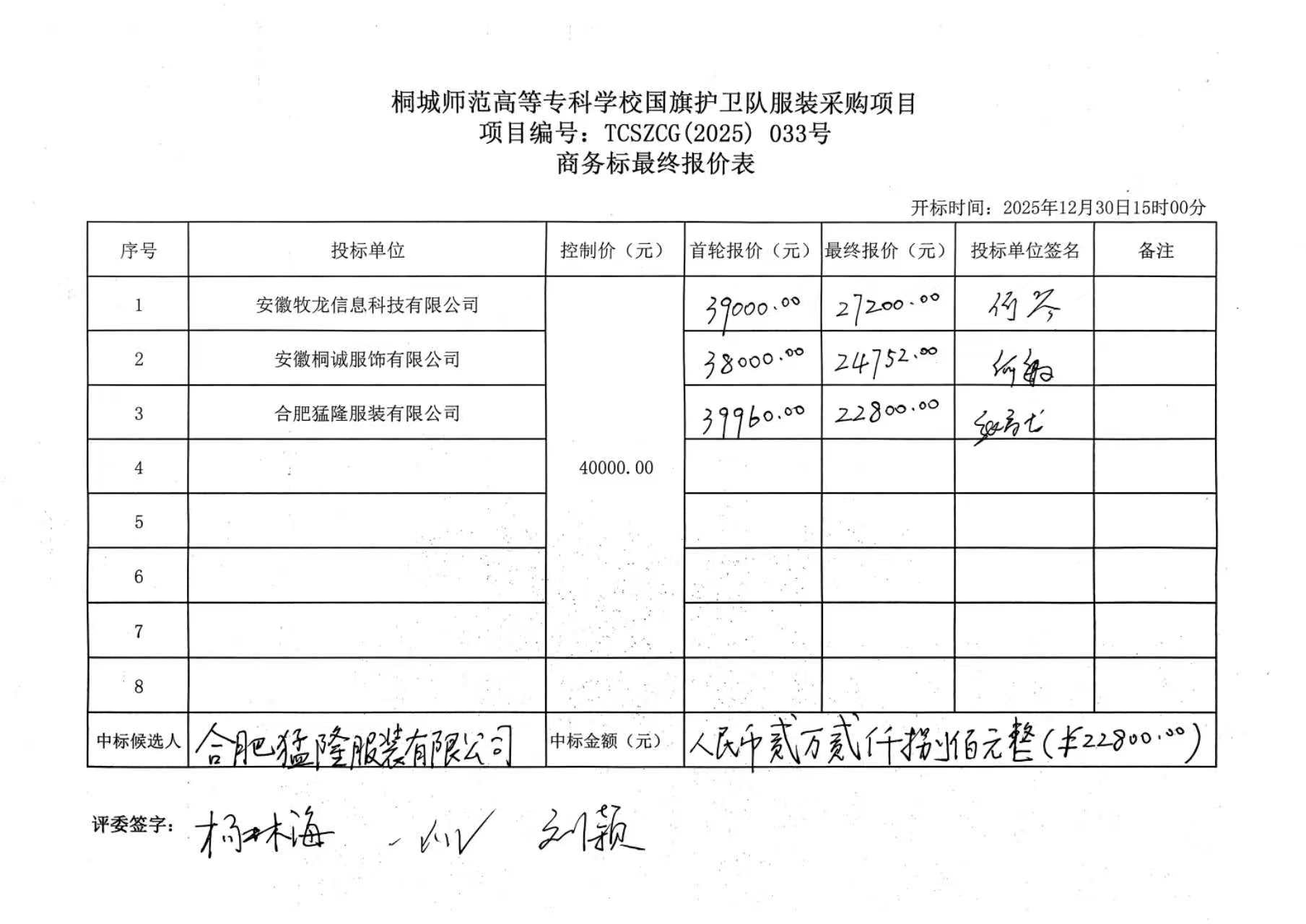 二、项目名称:桐城师范高等专科学校国旗护卫队服装采购项目