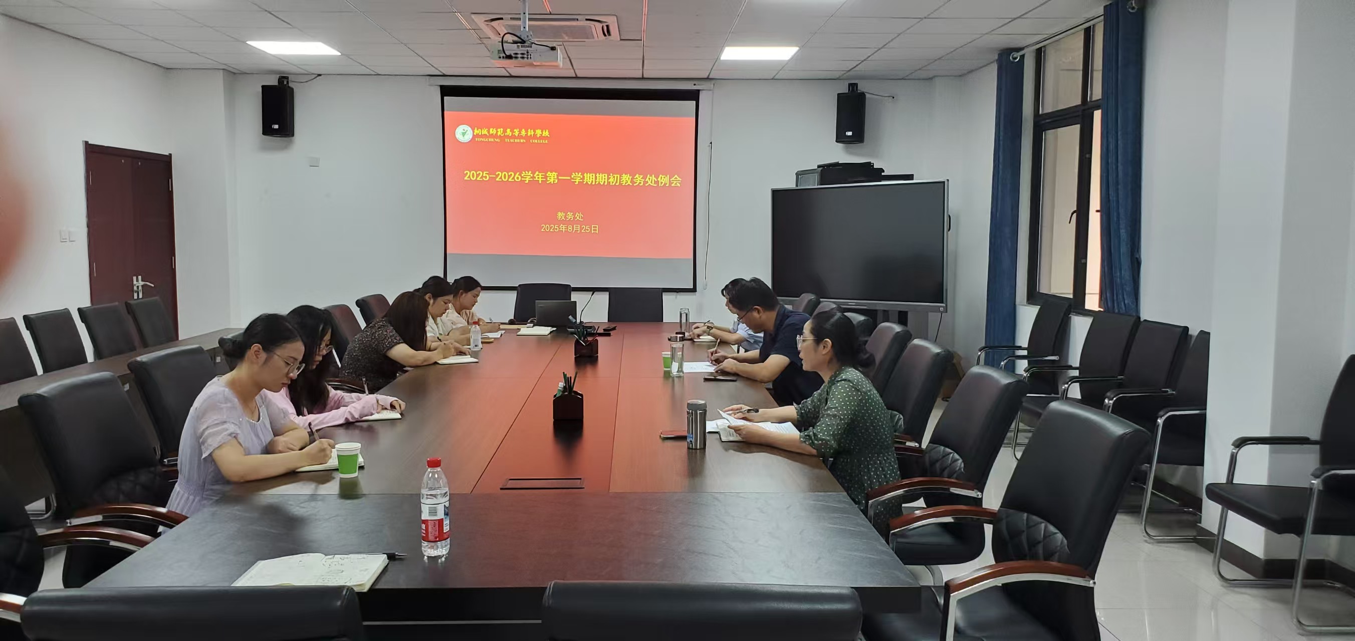 为确保新学期各项教学工作平稳有序开展,8月25日上午,教务处在明德楼二楼第三会议室组织召开期初工作例会。校党委委员、副校长王宏伟出席会议并发表讲话,会议由教务处处长程爱兰主持,教务处全体工作人员参会。