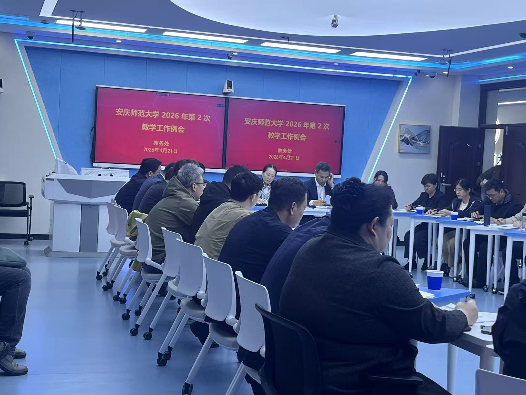4月21日,安庆师范大学教务处在龙山校区D楼202智慧教室召开2026年第2次教学工作例会。校党委常委、副校长吴琼出席会议并讲话,教务处、学生工作处、国际教育学院、教学质量监控与评估处、信息化建设与管理处、招生考试中心等部门负责人,各学院分管教学工作行政负责人,化工专业学院、理工专业学院教学工作负责人,各学院教学秘书,教务处、教学质量监控与评估处全体人员等参加会议。我校作为联合培养单位,由教务处崔喆老师参会,共同学习领会会议精神。