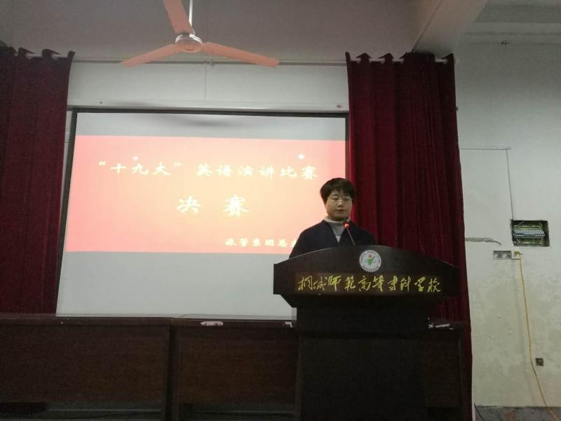 12月14日晚7点由校团委主办,旅游与公共管理系承办的“十九大”英语演讲比赛决赛在学生活动中心顺利进行。 担任此次比赛的评委有旅管系学管副主任叶茂,外教Maureenn女士以及旅管系倪洁和吴瑕两位老师。