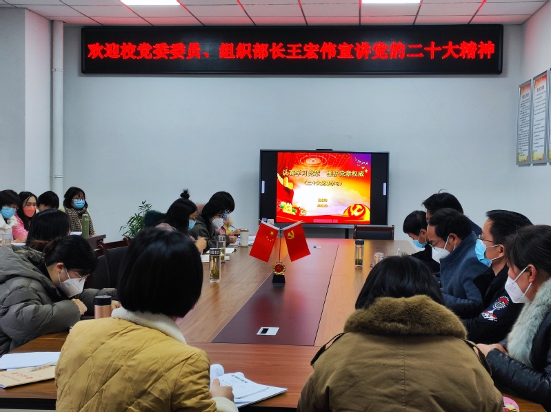 王宏伟以“认真学习党章,维护党章权威”为主题,从“学习新修订党章的重大意义”“党章的发展历程”“党章的结构和内容”“增强党章效力,维护党章权威”四个方面,结合自身学习体会,对党的二十大精神进行了全面深刻的解读。