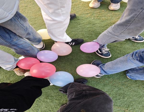 这次团建活动的核心环节是踩气球比赛。同学们的脚踝上绑着色彩缤纷的气球,随着裁判一声令下,比赛正式开始。大家纷纷出击,在操场上奔跑、追逐,一时间气球的爆破声、同学们的欢笑声和呐喊声交织在一起,将现场气氛推向了高潮。比赛过程中,各小组的成员们团结协作,有的负责进攻,有的负责防守,充分展现了团队的智慧和力量。