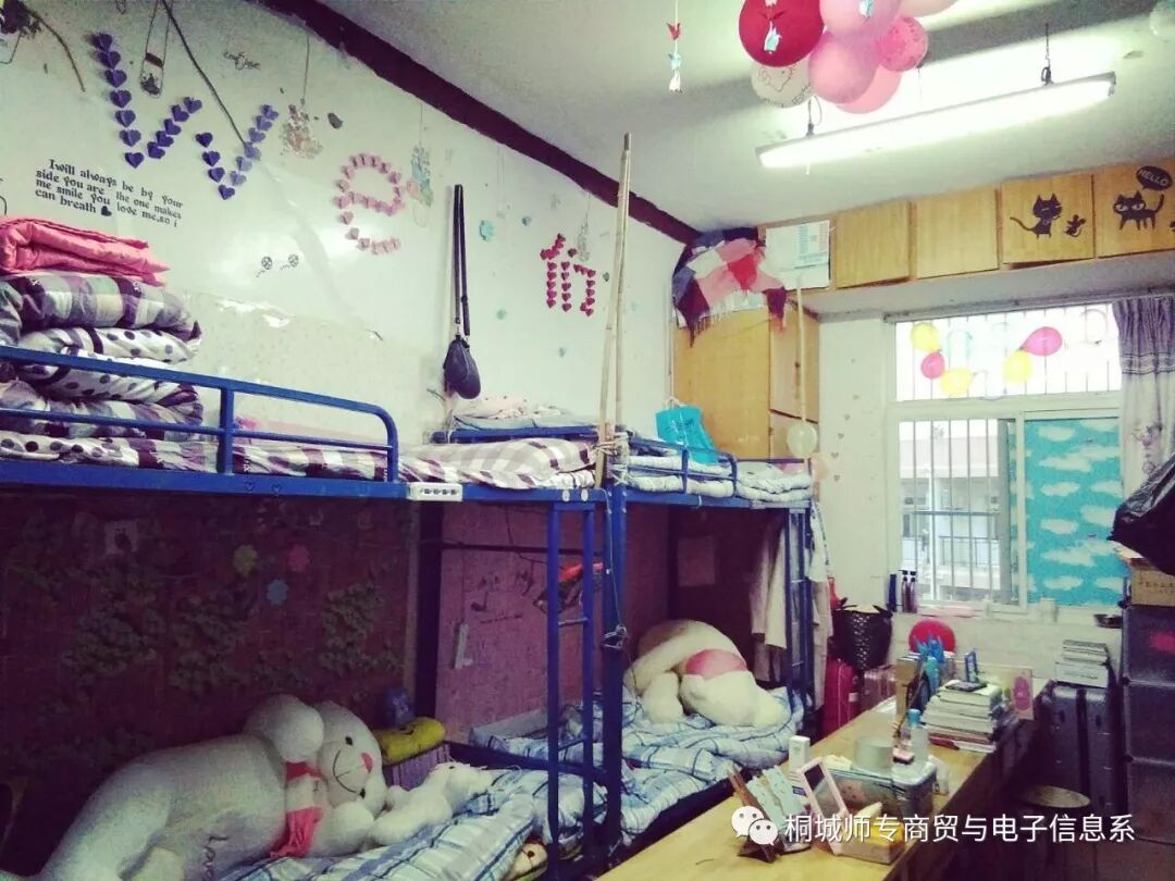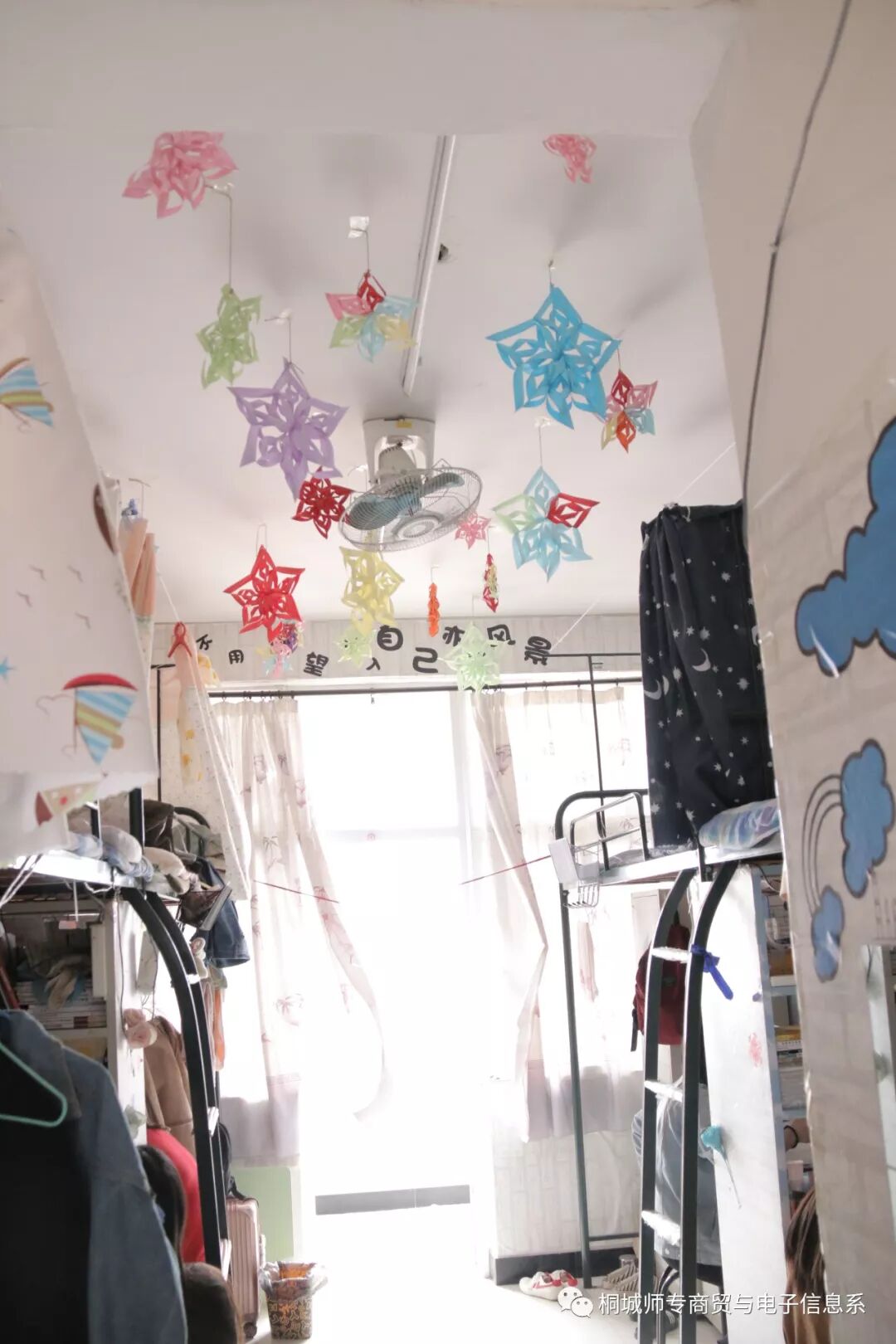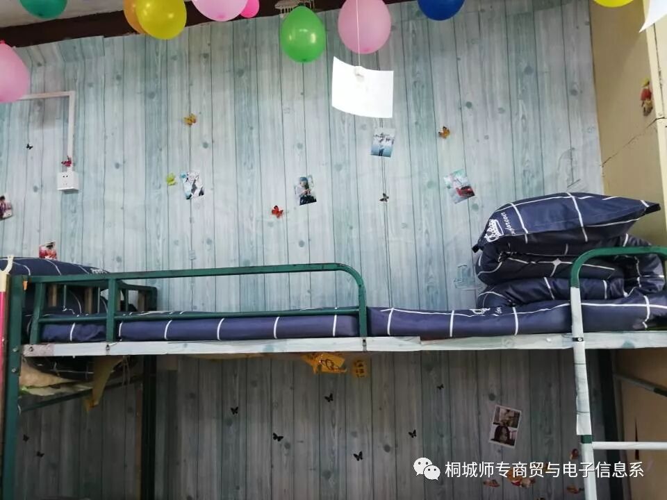 寝室是我们的家, 家的环境好坏直接影响学习的气氛。 接下来我们来逛逛桐莘们精心布置的寝室 小小的寝室 与脑洞大开的我们展开一段旷“室”奇缘 小小的舞台 让一群多才多艺的小可爱在台上大放光彩 让我们继续参观“仙宫”吧! 拥有一个舒适干净的寝室 是我们大家共同的愿望。 干净而又整洁是我们的代名词,