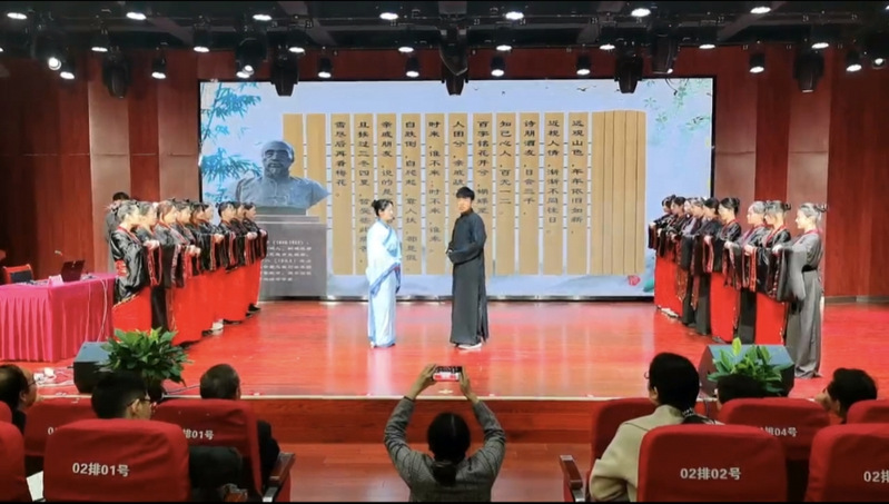 为深入贯彻习近平文化思想,推动中华优秀传统文化创造性转化、创新性发展,11月8日下午2:00,“习近平文化思想的桐城实践”安徽省思政课程研讨会在桐城师范高等专科学校音乐厅隆重举行。受主办方邀请,桐城文化爱好者协会精心改编桐城派后期大师吴汝纶先生名作《百字铭》,以新颖的形式、优美的吟诵、曲折的情节精彩亮相,为研讨会注入青春活力,赢得现场嘉宾的一致好评。
