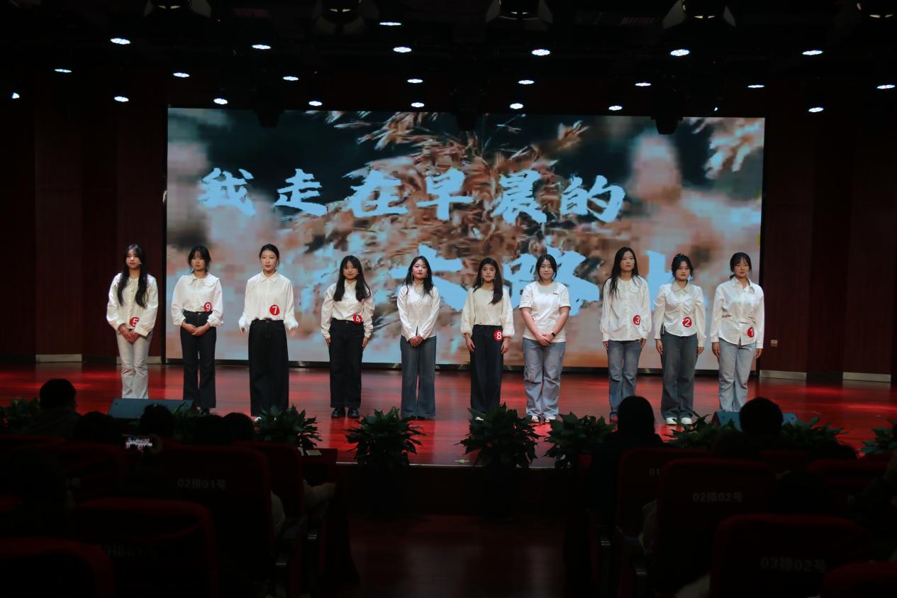 第一环节“集体亮相”中,十位选手以一首集体诗朗诵《我走在早晨的大路上》发出了属于青春的第一声宣言,他们用清澈而坚定的声音,铺开了一条充满希望与力量的“大路”。朗诵结束后,选手们依次走向台前,以简洁有力、各具特色的方式进行自我介绍。或沉稳大方,或灵动俏皮,短短数语间,鲜明的个人风格与卓越的表达潜质已初露锋芒,完成了从“集体形象”到“独特个体”的精彩初显,赢得了现场观众的初次喝彩