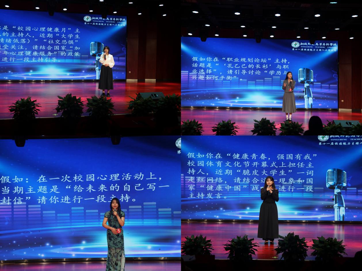 第二环节“个性主持”中,选手们化身新闻主播、派对主持、文化推介人,在有限时间内完成了各具特色的模拟主持。内容从时政热点到校园趣闻,从传统文化到科技前沿,展现了选手们宽广的视野和对社会生活的敏锐观察。