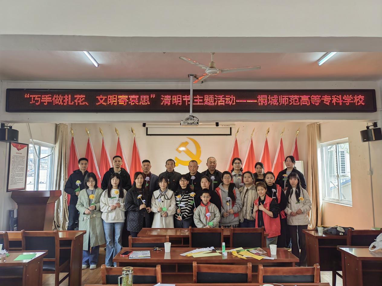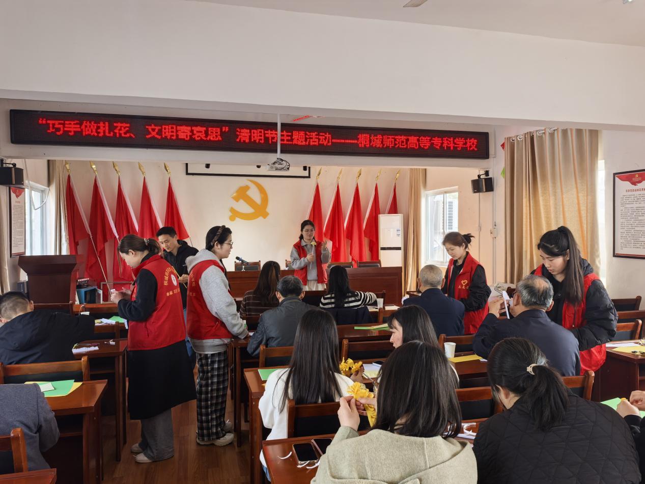 为深入推进党建带团建工作,传承红色基因,厚植爱国情怀,搭建党员与青年学子沟通交流的桥梁,桐城师范高等专科学校艺术与设计系组织学生志愿者走进西苑社区,开展“巧手做扎花,文明寄哀思”纸花制作共建活动,随后与西苑社区党员同志一同前往桐城市烈士陵园,开展祭奠英烈主题活动,以实际行动践行初心使命,凝聚党团奋进力量。