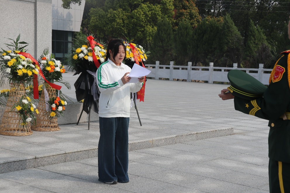 学生代表薛欣然同学深情讲述革命先烈不畏艰险、浴血奋战的英雄事迹,深刻阐释英烈精神的时代内涵,号召全体同学铭记历史、缅怀先烈,将爱国情、报国志融入学习生活,以刻苦钻研的态度奋发成才,用实际行动传承先烈遗志,扛起青年责任。