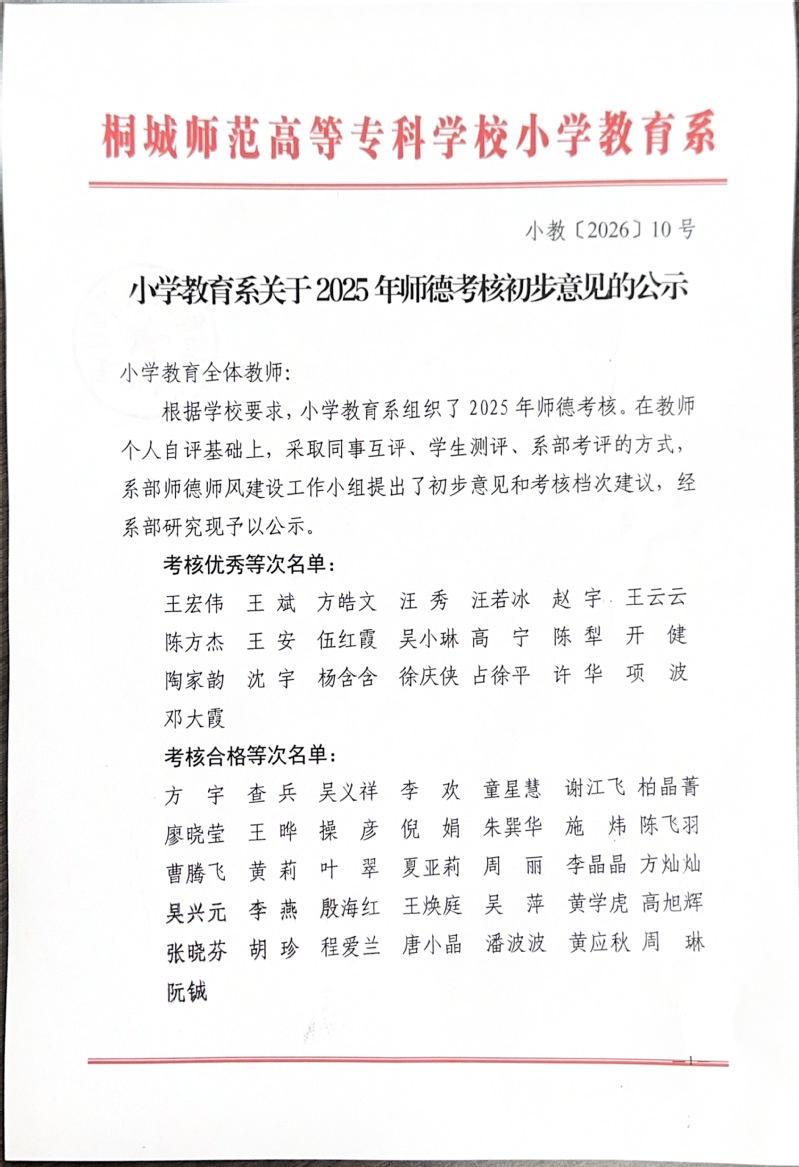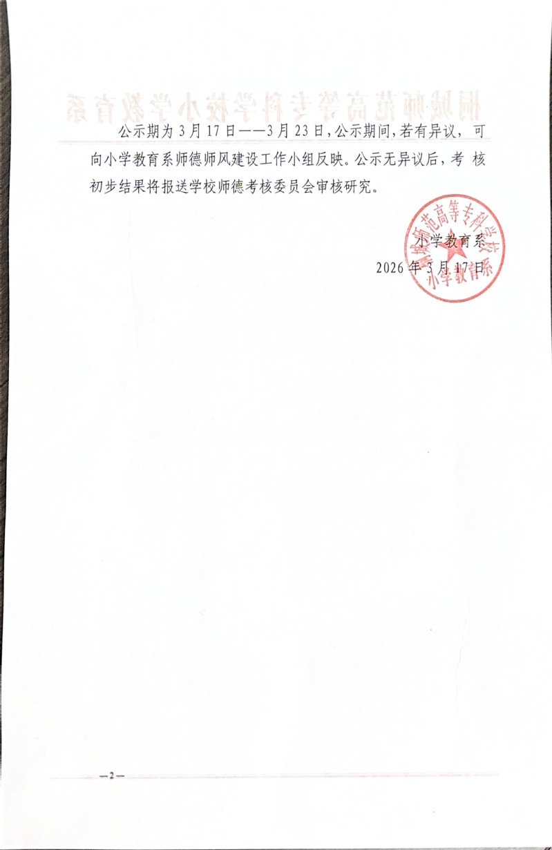 小学教育系关于 2025年师德考核初步意见的公示