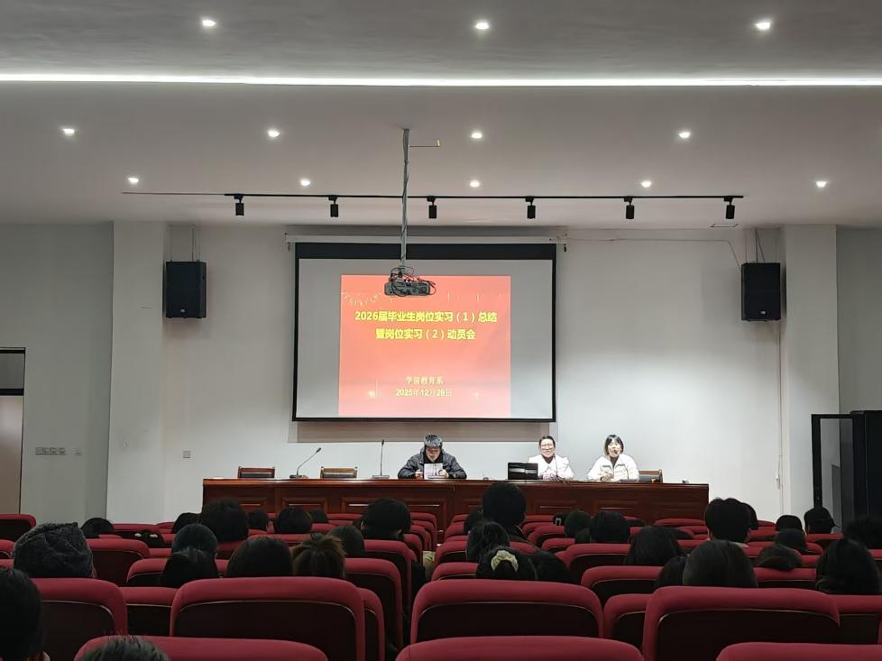 2025年12月29日,学前教育系在其昶楼报告厅召开2026届岗位实习总结暨顶岗实习动员大会。系副书记金丹萍、副主任宋晓燕,毕业班辅导员及全体2026届毕业生参会,会议由宋晓燕主持。