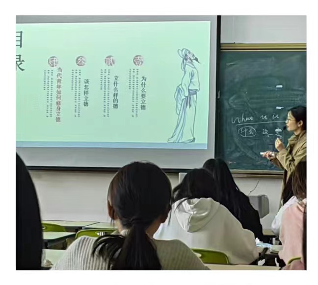 专职辅导员王辰铭结合桐城文化故事、实时热点事件和习近平总书记的讲话,深入地探讨应该如何修身立德。通过视频和图片形式的展现,与学生互动,带动学生思考。引导学前教育的同学,以后作为教师,先要立自己的德,日后才能成为学生为学、为事、为人的示范。