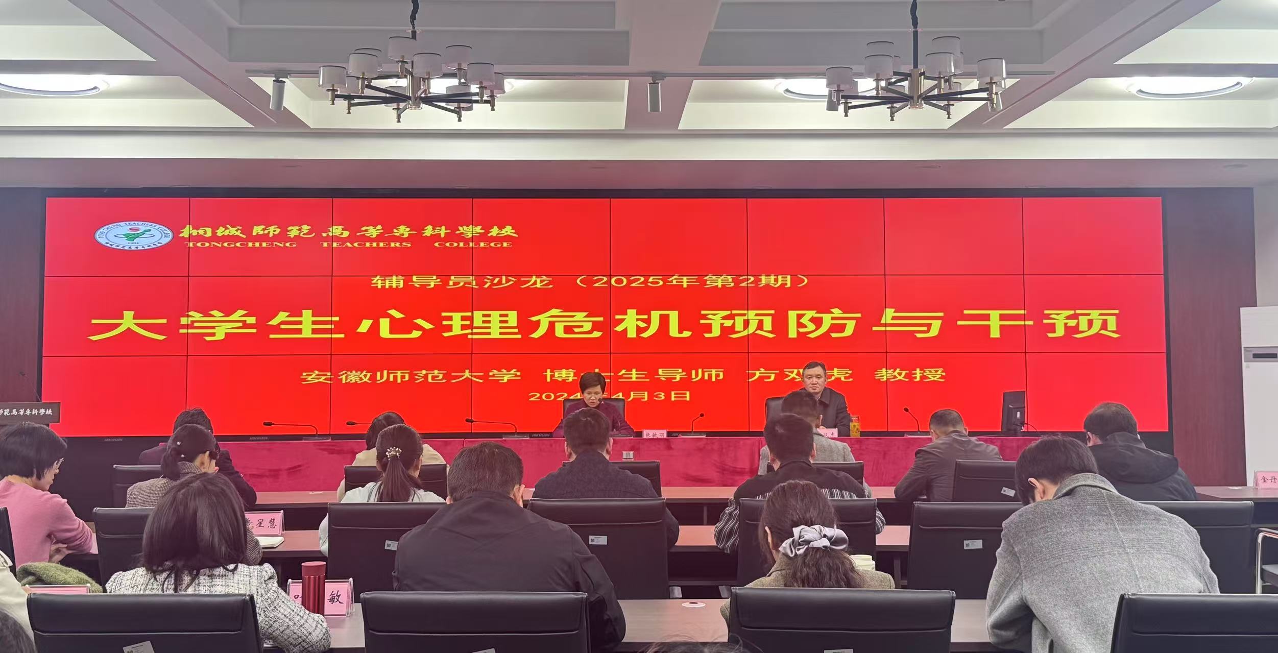 为进一步加强高校辅导员队伍建设,提升辅导员专业素养与心理健康辅导实操能力,4月3日,我校特邀安徽师范大学心理咨询研究所所长、心理学博士方双虎教授来校开展“大学生心理危机预防与干预”专题讲座。学生处、各系分管学生工作副主任、各系学管干事、全体专兼职辅导员、各班心理委员参会,讲座由校党委副书记张敏丽主持。