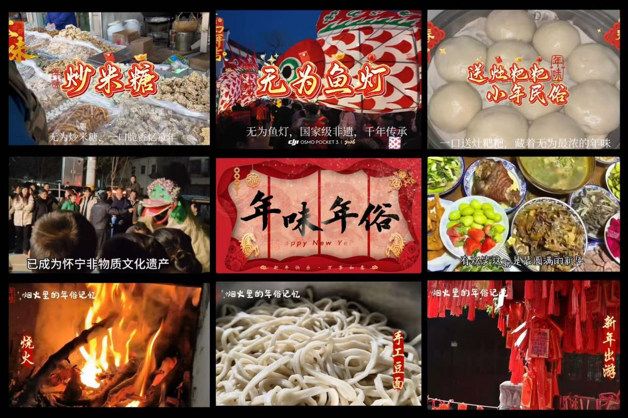 安庆怀宁非遗狮灯气势恢宏,尽显传统民俗的独特魅力;无为送灶粑粑、鱼灯表演饱含乡土温情,传递团圆喜乐……一段段短视频鲜活生动、真挚感人,同学们在记录、讲述与分享中既感受了年味之浓、亲情之暖,也厚植了文化自信与家国情怀,使传统年俗在青春视角下焕发生机与活力,让民俗文化在代代相传中得以生生不息。