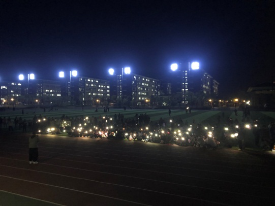 12日晚630,本次活动正式开始。辅导员胡文君老师先作了简短讲话,对此次活动的内容、目的和意义进行了简单的介绍,并鼓励同学们积极踊跃地参与活动。活动在2021级音乐教育班班长马雨欣的歌曲《我们的爱》中拉开帷幕,优美动听的歌声响彻整个操场,台下的同学们也打开闪光灯热情回应,现场气氛十分热烈。在节目中还穿插了很多小游戏环节,如抢凳子、撕名牌、猜成语、两人三足等,游戏过程中充满了欢声笑语,通过游戏大家感受到了团队的力量和合作的重要性。