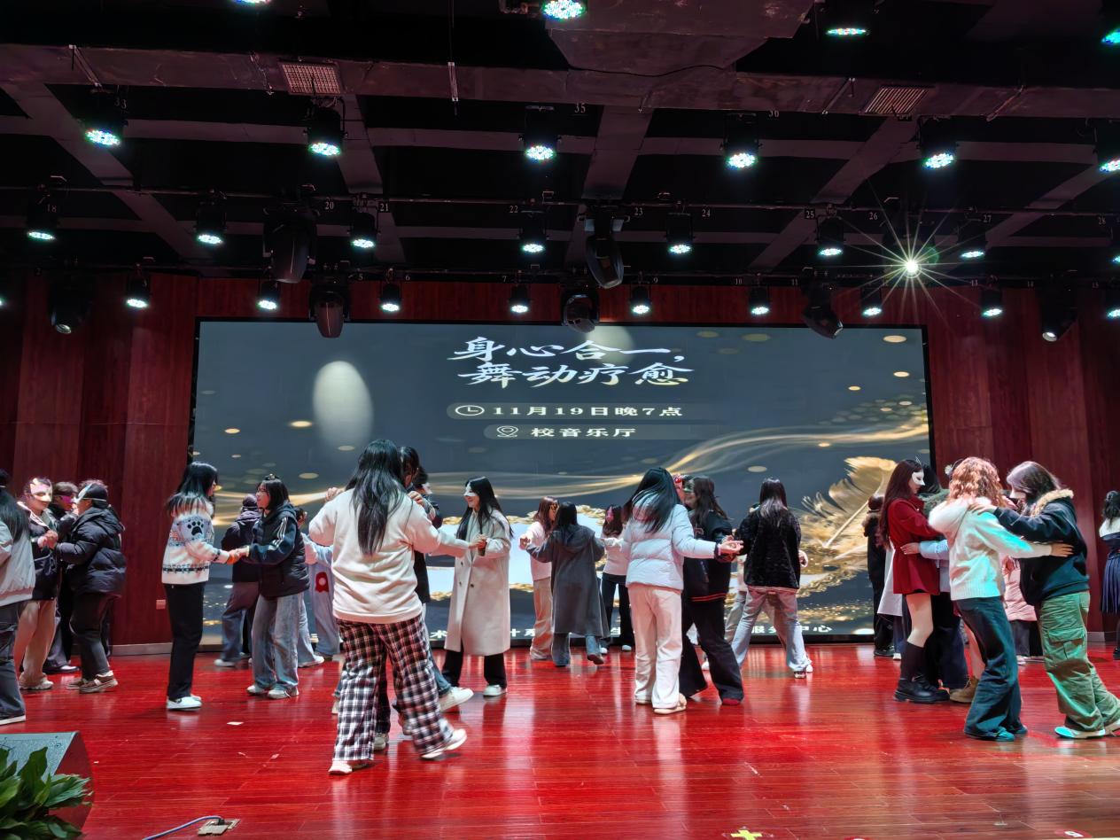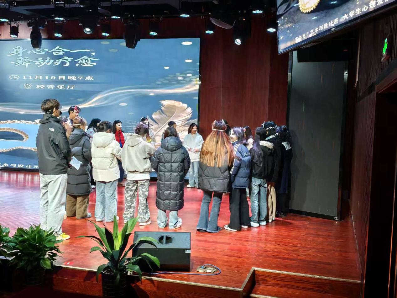 为深化心理育人理念,丰富学生校园生活,全方位提升学生身心素养为帮助学生缓解社交压力、实现身心放松,艺术与设计系于2025年11月19日晚在音乐厅举办“身心合一·舞动疗愈”假面舞会活动,来自艺设系各年级各专业的46同学参与其中。