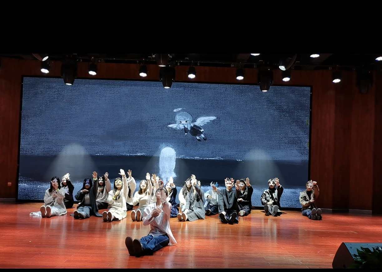 即兴创作舞蹈环节中,音乐从舒缓转向喜悦,同学们从最初的腼腆试探,逐渐随着音乐节奏舒展肢体,让假面下的青春活力在自由律动中尽情迸发。