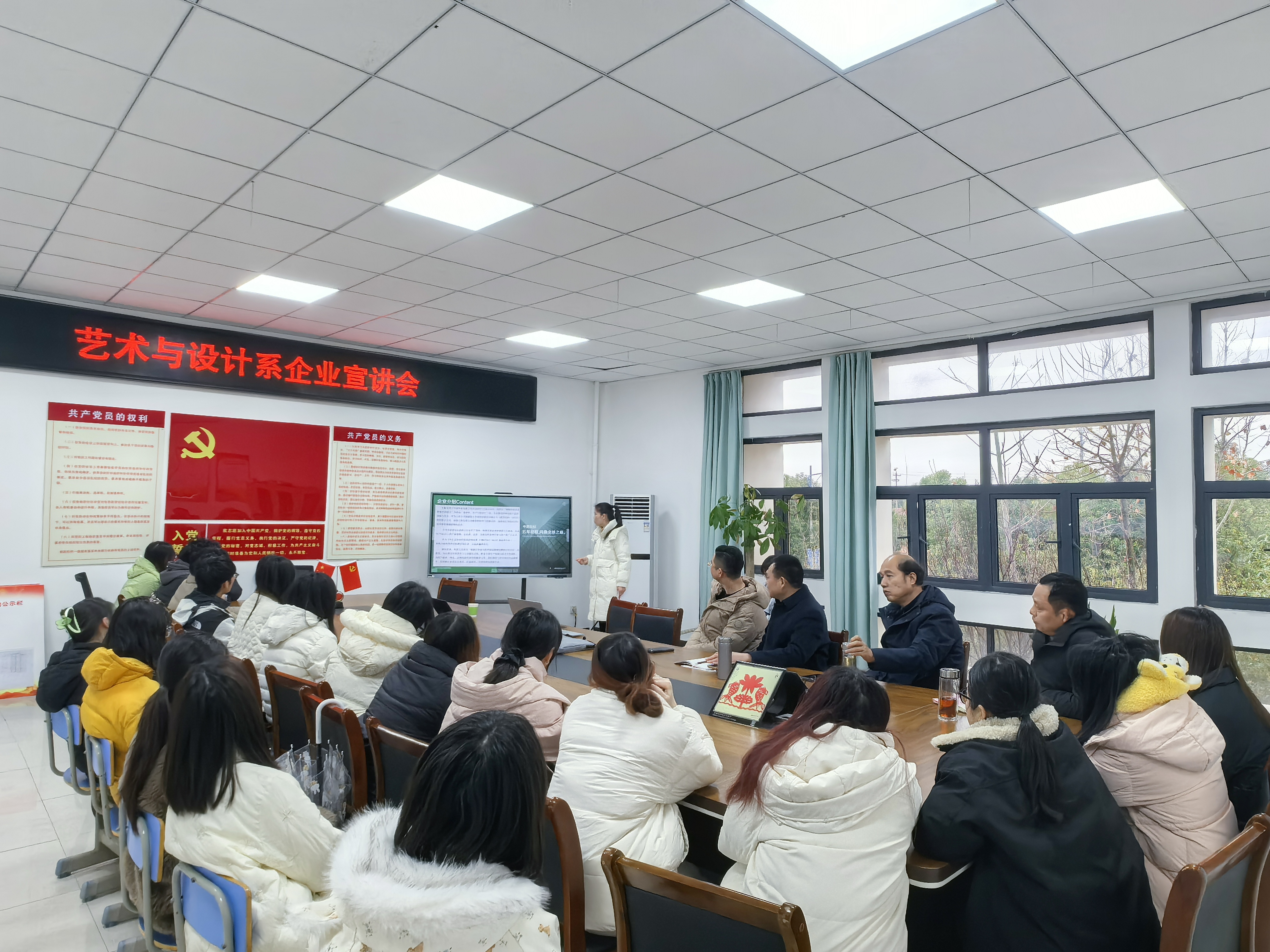 为搭建校企人才对接桥梁,助力2026届毕业生精准把握就业机遇,12月23日下午2点,艺术与设计系在系党员活动室组织开展2026届毕业生绿色包装行业企业宣讲会。本次活动特邀布袋王、金科印务和同力新材料三家行业内优质企业代表到场,系领导、毕业班辅导员及2026届60名毕业生代表参会。