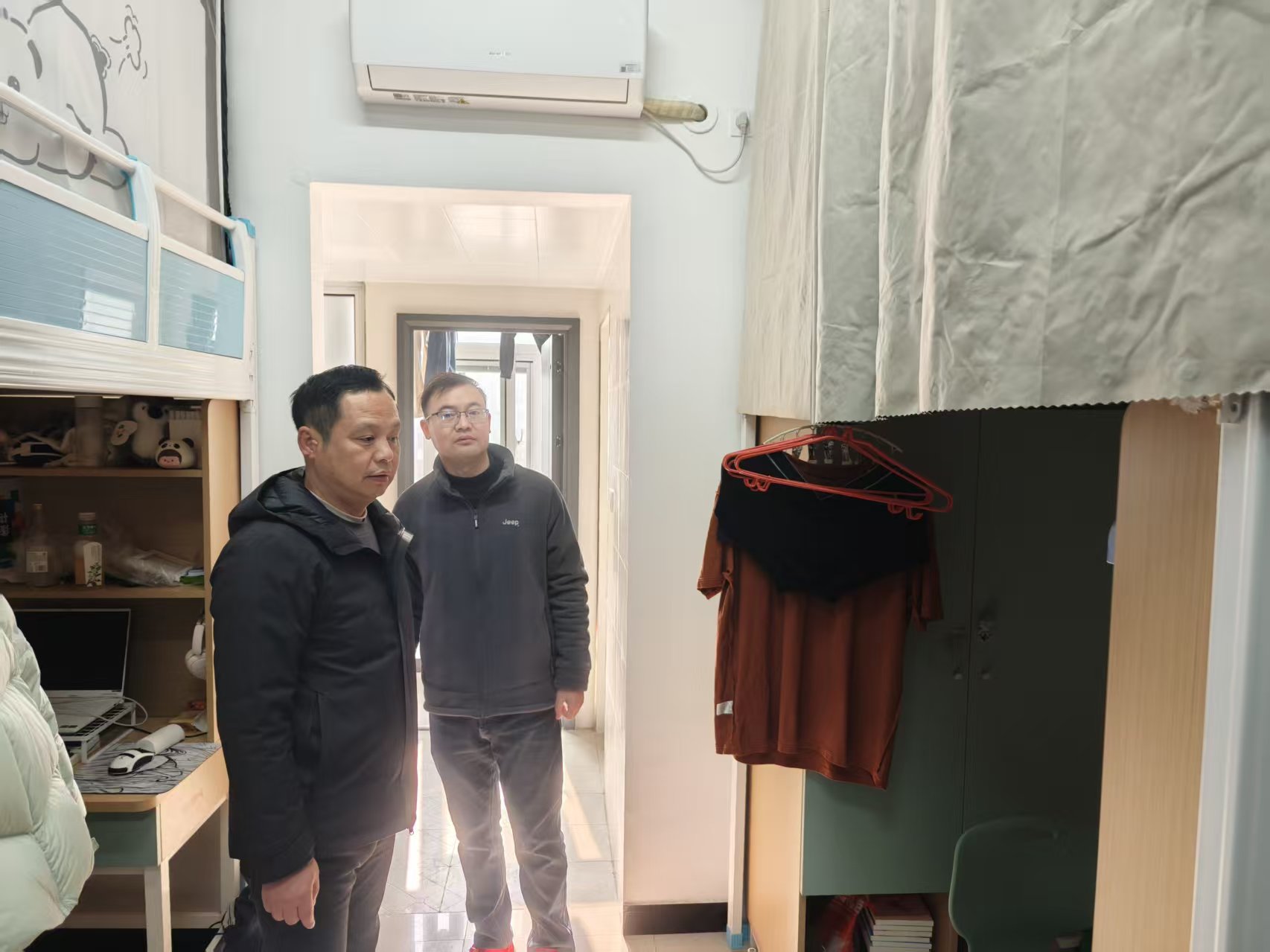 检查过程中,系领导一行本着“全覆盖、零容忍、重实效”的原则,对学生宿舍的消防安全、用电安全、卫生状况等重点环节进行了细致排查。检查小组重点查看宿舍内是否存在违规使用大功率电器、私拉乱接电线、存放易燃易爆物品等安全隐患,同时对宿舍门窗、消防设施配备情况进行逐一检查。每到一处,检查小组的领导老师们都与学生亲切交流,详细询问学生的学习生活情况,叮嘱大家要提高安全防范意识,自觉遵守宿舍管理规定,养成良好的卫生习惯,共同维护整洁、安全的宿舍环境。针对检查中发现的问题,检查小组现场提出整改意见,明确整改责任人与整改时限,要求相关学生立即整改,确保隐患及时清零。