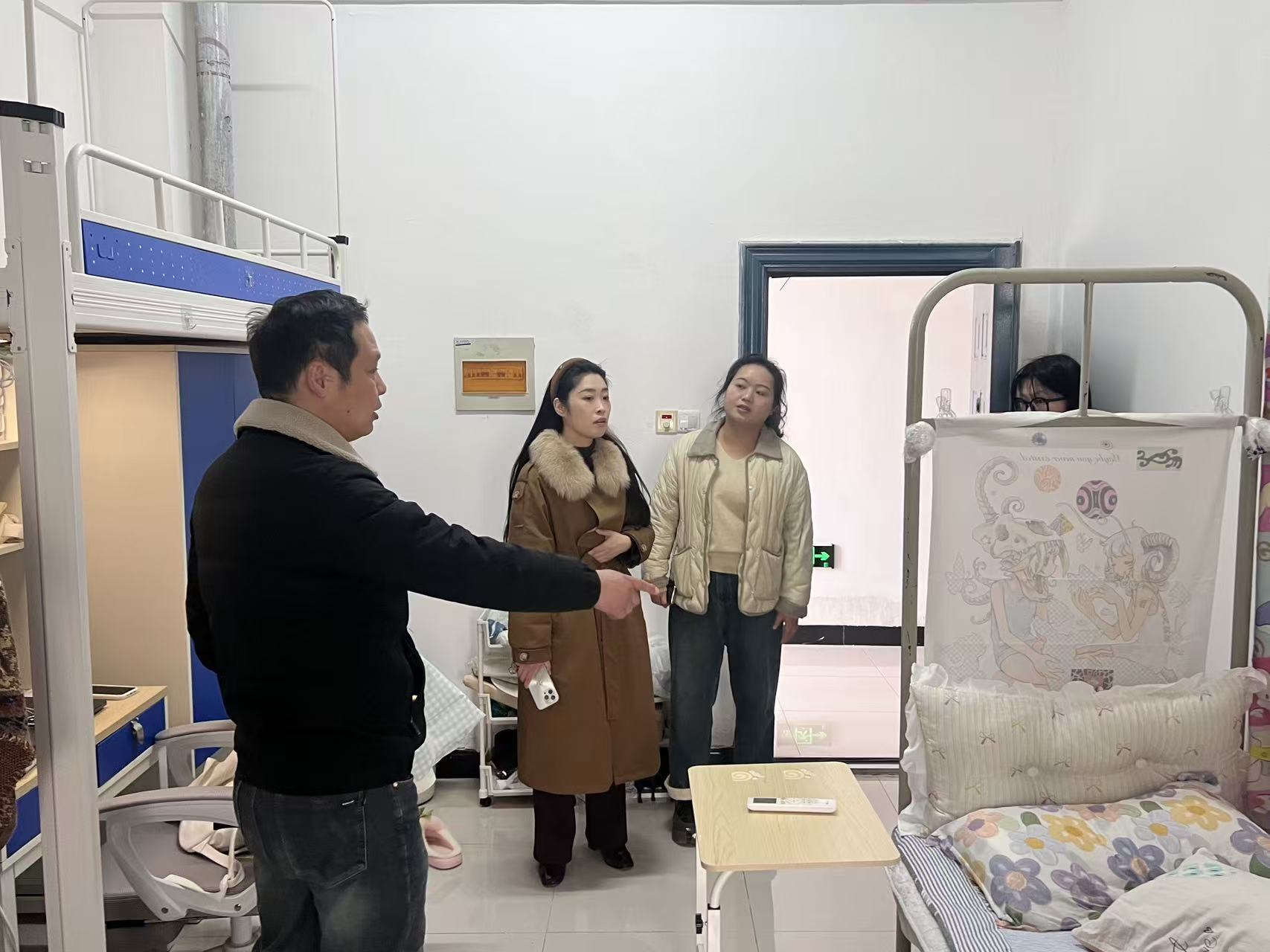 春回校园,万象更新。为精准掌握学生返校动态,深入了解学子思想与实际需求,传递系部关怀,筑牢校园安全防线,保障新学期工作开好局、起好步,3 月 6 日,艺术与设计系主任周琳、副书记孙禺慧带领学工队伍,分组对 24 级、25 级学生宿舍开展全覆盖走访慰问,为返校学子送上新学期的问候与期许。