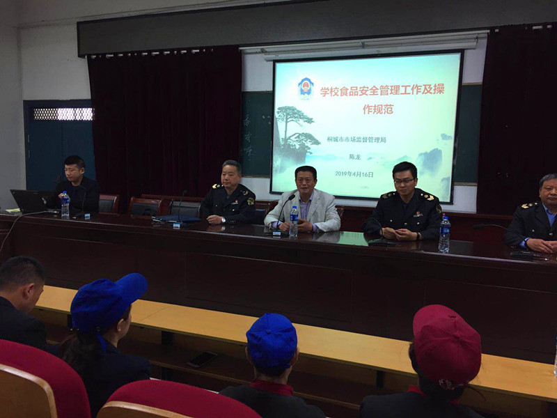 4月16日经学校邀请,桐城市食品药品监督管理局食品安全工作指导员陈龙,桐城市市场监督管理局文昌所四位同志,在报告厅为我校开展了学校食品安全管理工作及操作规范培训。