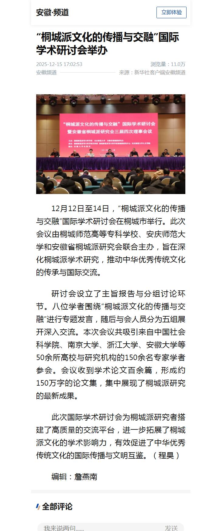 安徽频道:“桐城派文化的传播与交融”国际学术研讨会举办