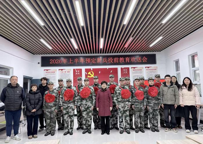 春潮涌动处,扬帆奋进时。为切实增强预定新兵的荣誉感与使命感,助力他们顺利完成从校园学子到准军人的角色转变,3月1日,我校学生处精心组织开展2026年上半年预定新兵役前教育欢送会。校党委副书记张敏丽、学生处全体工作人员、13名从桐城应征的预定新兵及其辅导员齐聚一堂,共同为即将踏上军旅征程的青年学子送行。