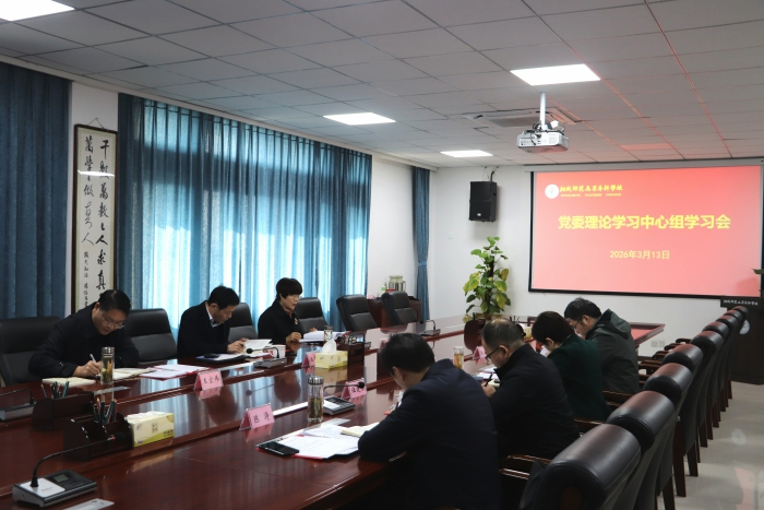 3月13日,校党委理论学习中心组召开2026年第三次集中学习会,集体学习《习近平谈治国理政》第五卷、《习近平关于树立和践行正确政绩观论述摘编》和《习近平总书记地方工作期间坚持正确政绩观生动实践》。会议由党委副书记、校长江贵生主持,校党委理论学习中心组成员参加会议。