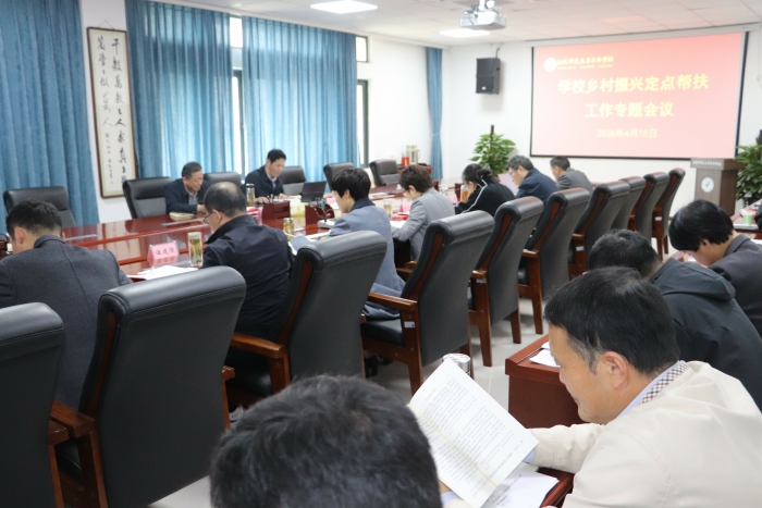 4月15日上午,校党委在明德楼第六会议室召开2026年乡村振兴专题工作会议。会议全面听取了2026年乡村振兴工作相关情况汇报,总结了前期工作成效,明确了工作连续性要求,部署了年度重点任务与资金规范管理事项,确保乡村振兴工作平稳有序、衔接有力、扎实推进。党委书记王子龙主持会议并讲话。党委副书记、校长江贵生,党委副书记张敏丽,副校长程玉梅,党委委员、纪委书记汪志耿,党委委员、宣传部部长伍建强,党委委员、组织部部长王斌,党委委员、统战部部长周琳,党委委员陈涛出席会议。相关部门负责人及驻村工作队代表等参加会议。