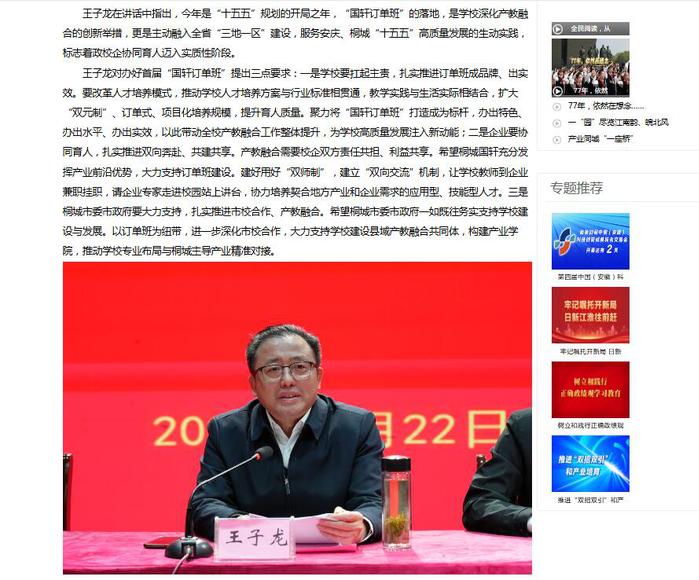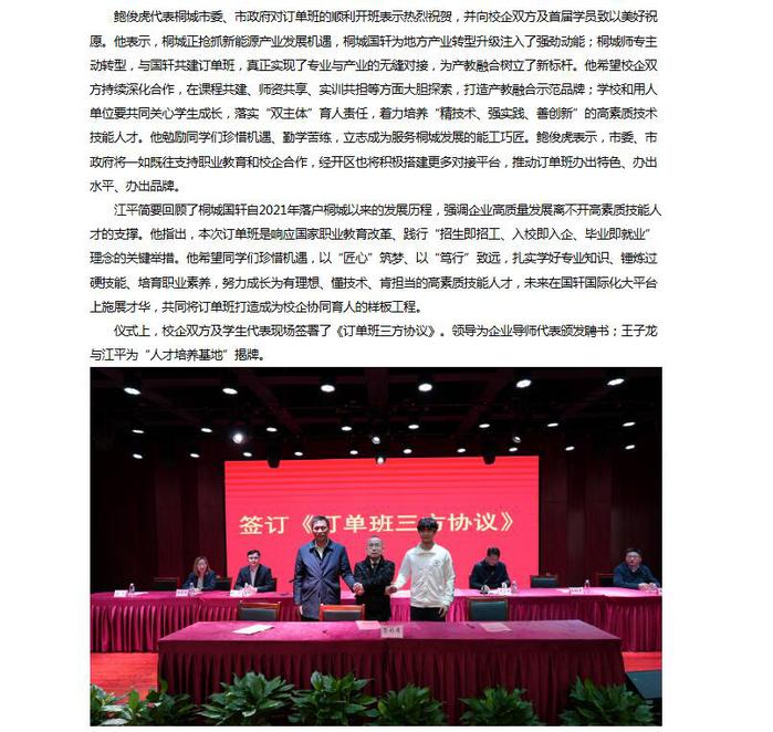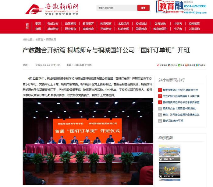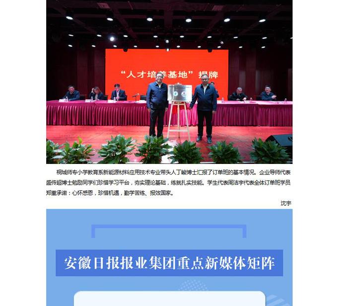 安徽新闻网:产教融合开新篇 桐城师专与桐城国轩公司“国轩订单班”开班