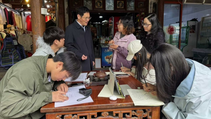 在苏州写生基地,江贵生一行实地察看师生写生创作与生活住宿情况,与带队教师深入交流实践教学安排及安全管理措施,并详细询问学生的学习进展、创作心得与生活需求。江贵生对同学们展现出的饱满学习热情和认真创作态度给予充分肯定。他强调,要珍惜实践机会,提升专业技能,感悟地域文化魅力,推动理论与实践的深度融合,圆满完成学习任务;要求带队教师严格落实安全责任,加强教学指导与生活服务,确保实践教学安全有序。
