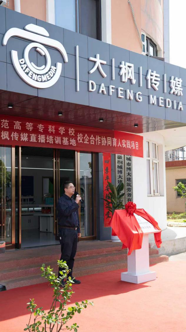 为深化产教融合、校企协同育人,推动本地电商直播产业高质量发展,4月20日上午,桐城师范高等专科学校与桐城市大枫数字传媒科技有限公司校企合作实训基地揭牌仪式隆重举行。